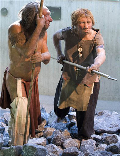 Instead of the hairy and primitive animal shown in the above and other pictures, we have seen that Neanderthals looked a lot like us. They were smart and capable, just like we are. They made good use of the landscapes around where they lived, and chose their home bases with care. They invented new technologies for making composite tools, and for keeping themselves warm. Neanderthals even seem to have made decorations for themselves or their clothing, and to have used pigments to add colour to themselves and their possessions. They may even have used these pigments to make paintings on the walls of caves.