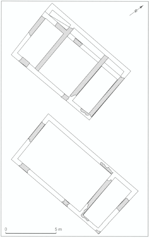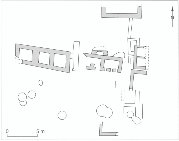Just like the Yarmukian culture, the Wadi Rabah culture was mostly made up of small farming villages dotted around the landscape. While villages of the Yarmukian culture had a lot of variation in the shapes of houses that people built – sometimes even within the same village – in the Wadi Rabah pretty much everyone seems to have built themselves rectangular houses. These were sometimes designed as a single long room, and sometimes the houses were divided into a series of internal rooms. Not very many of the Wadi Rabah sites which have been excavated have been able to expose a large area of the village, so it is hard to tell exactly how people liked to arrange these rectangular houses in their villages. As far as we can tell, the houses seem to have been mostly scattered around the village, with the occasional small clusters of houses together but mostly spread out with plenty of space between each house. The houses were usually built from stone foundations, with the upper parts of the walls built of either mudbrick or pisé (rammed earth). Sometimes these houses had paved patio areas around them, or courtyard areas between adjacent houses.