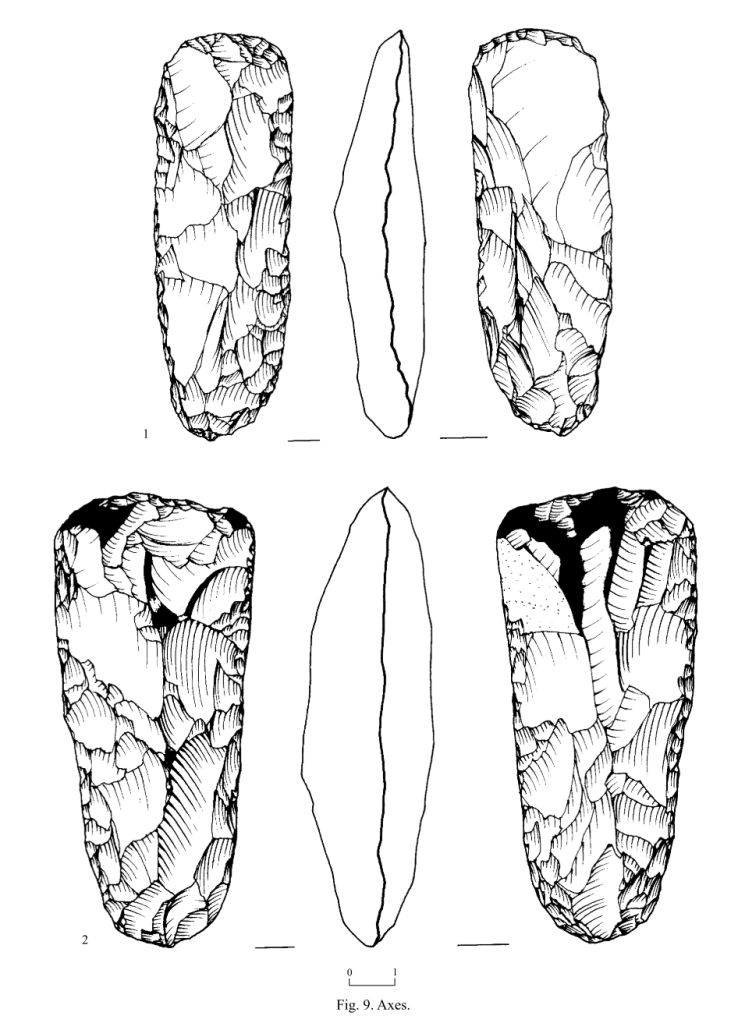 This does not mean that people living in Wadi Rabah villages didn’t ever keep any weapons. While we do not find many – and while arrowheads are actually a lot less common during the Wadi Rabah than they were previously – we do have chipped and carved stone axes as well as carved stone maceheads. A mace is essentially a weight on the end of a stick that you can use to club people with. These were used as weapons across many parts of the world well into even the more recent historic periods. While maceheads have been very occasionally found from Yarmukian sites and even from one later Pre-Pottery Neolithic site (Ain Ghazal) they seem to be more common in the Wadi Rabah (and more common still later on in the Chalcolithic). These were carved balls or cylinders of stone about four to six centimetres (two to three inches) across with a hole drilled through the centre to insert a stick. These were almost always made from local stone, usually limestone.